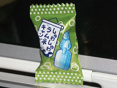 These were universally the least favorite of all the candies. One guinea pig was quoted as saying “The good part is the flavor fades” and well, there was general agreement on that statement. Another guinea pig was heard to have exclaimed “Oh my GOD! The flavor is intense” and I’d have to say that of all the Ramune candy, the blue is the most flavorful. However. The intense flavor is a sour/eucalyptus/menthol thing gone horribly wrong. My tongue is tingling from the taste of this critter (I’m reverifying the notes) and my mouth is watering from the sour but my breath is mentholaty cool. Actually, and don’t tell anyone, I don’t mind these so much. Either that or I’m getting used to Japanese candy. It’s been a while since I’ve tasted the blue Halls cough drops but from what I can remember, these are a pretty close match. The one thing everyone agreed on was that the blue Ramune tasted a lot like a cough drop. The blue are also a tad on the bitey side so watch your tongue when eating them.